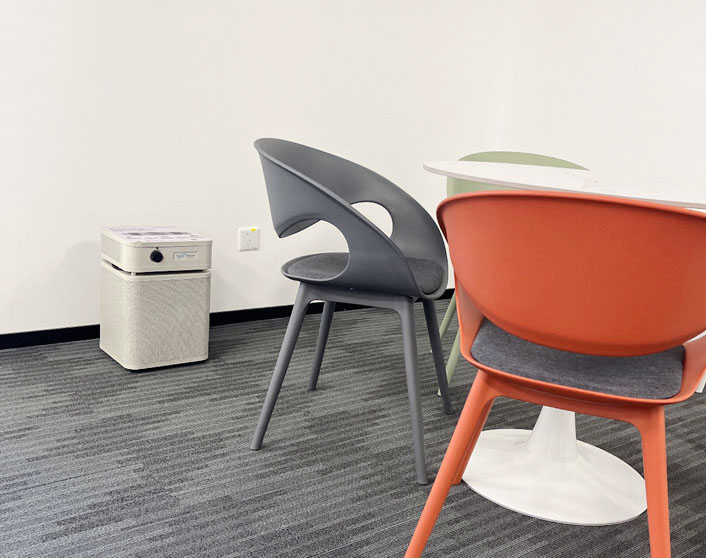 针对办公区的开放布局,项目配置了多台大CADR值的商用净化器,覆盖工位、会议室等关键区域。这些设备能快速分解甲醛、过滤PM2.5和细菌,特别像复荣FOVATT这类机型搭载的ESPCC技术,还能把臭氧转化为氧气,实现人机共存的同时净化。团队还定期检查滤网状态,避免二次污染——毕竟滤网饱和了不光没效果,反而可能成新污染源。